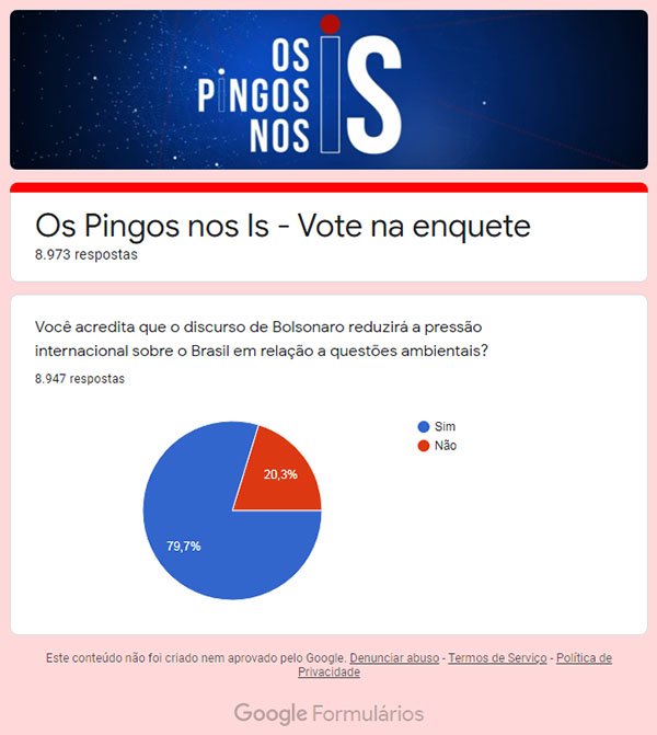A Jovem Pan realizou ontem uma enquete com a seguinte pergunta: