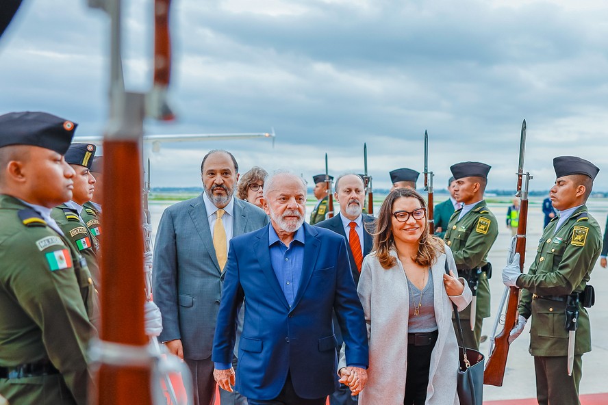 Presidente Lula na chegada à Cidade do México, no Aeroporto Internacional Felipe Ángeles — Foto: Ricardo Stuckert/Presidência da República