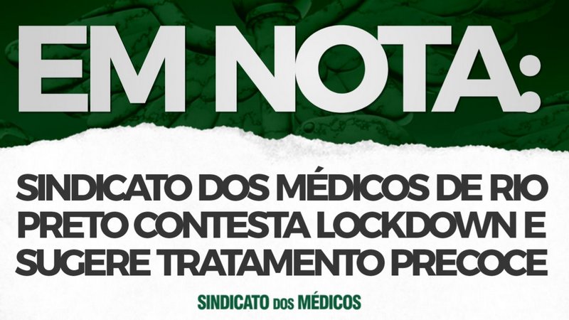 O Sindicato dos Médicos de Rio Preto e Região publicou nota no dia 16 criticando condução do Estado na pandemia, contestando Lockdown e sugerindo o tratamento precoce dos infectados.